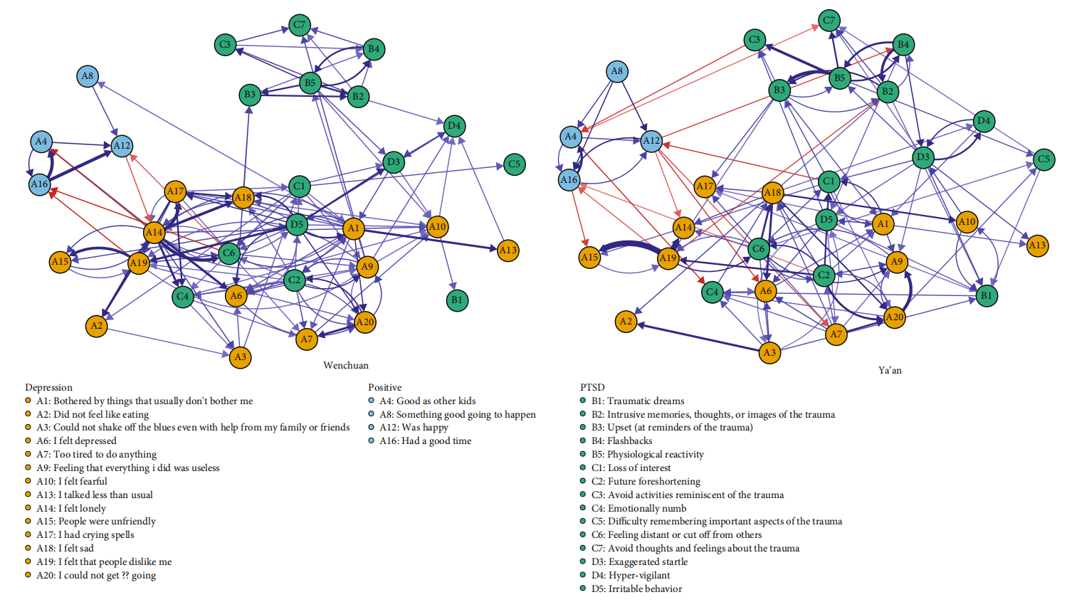 成人视频-国产色情直播 伍新春和王文超课题组近日在临床心理学TOP期刊Depression and Anxiety(IF = 7.4,8/131)上发文。该研究在对汶川和雅安地震后青少年两次随访调查的基础上,通过交叉对比的视角,借助交互滞后面板网络分析(cross-lagged panel network analysis,CLPN)和引导性图形分析(bootstrap exploratory graphical analysis,bootEGA)揭示了创伤后应激障碍(posttraumatic stress disorder, PTSD)和抑郁的共存模式。 研究发现,除了“难以回忆创伤的重要方面”这一症状外,其余的躁郁(dysphoria)症状均可被视为PTSD和抑郁间的桥梁症状。PTSD的闯入性和回避性症状通常会聚集在一起,而躁郁症状则倾向于同抑郁症状聚集在一起。PTSD和抑郁互为因果,而闯入性症状则是PTSD的核心症状,能激活回避性症状。汶川和雅安两个网络的全局特征类似,但局部特征存在不同。 通过建立PTSD和抑郁的共存网络,可以更好地了解二者间的关系和核心症状,有助于指导临床干预和治疗策略的制定。 论文链接://doi.org/10.1155/2023/4453663