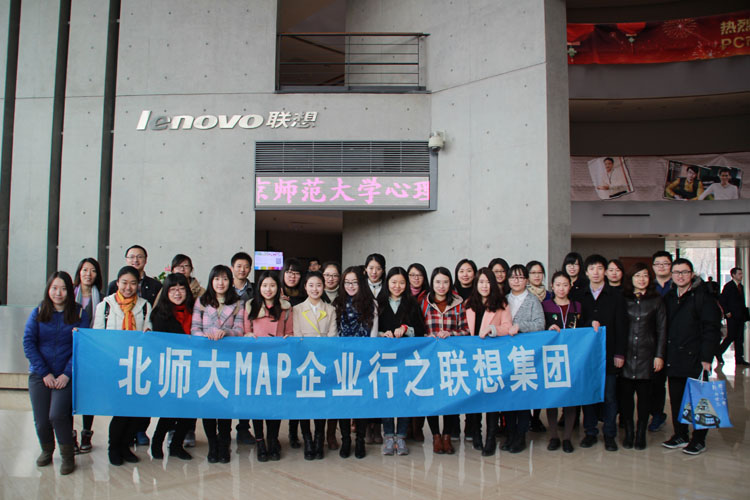 企业之行•心灵相伴——2016年3月15日上午8:30,北师大MAP创业企业行再度出发来到心仪已久的联想集团总部进行参观交流学习。心理学院张晓娜、蒋挺、滕丽美、谷沛嫱四位老师和25名MAP学生一起来到了联想集团。联想集团高校合作经理李振生先生热情的接待了北师大MAP的师生们。本次企业行分为两部分,一是师生参观联想体验厅,二是师生和联想人力资源部以及用户体验部代表进行互动交流。