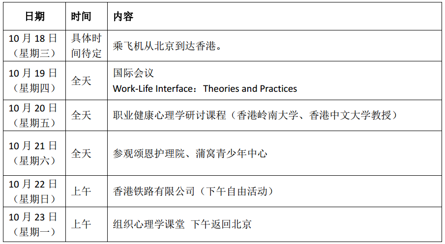 北师大成人视频 MAP2017香港实践行将于2017年10月18日-10月23日进行,此次实践行将聚焦应用心理学在香港的发展与现状。除了到访香港岭南大学、参与国际会议、香港岭南大学应用心理学系、香港中文大学心理学系教授带来的课程学习、讲座分享,并与师生进行交流。同时,还将参观相关企业、行业协会,全方位探索职业心理健康、员工帮助计划、心理咨询等领域在香港学术界、业界的发展及应用。 北师大成人视频 与香港岭南大学应用心理学系已签署协议开展硕士双学位项目合作,岭南大学将为通过选拔的北师大MAP优秀学生提供奖学金。目前,已有MAP学生顺利获得岭南大学半额奖学金,即将赴港攻读双学位。预计将于2017年10-11月针对2016级、2017级MAP学生启动北师大成人视频 与香港岭南大学应用心理学系硕士双学位项目选拔工作,有意向申请的同学请届时关注招募通知。(项目说明附在附件中供参考)