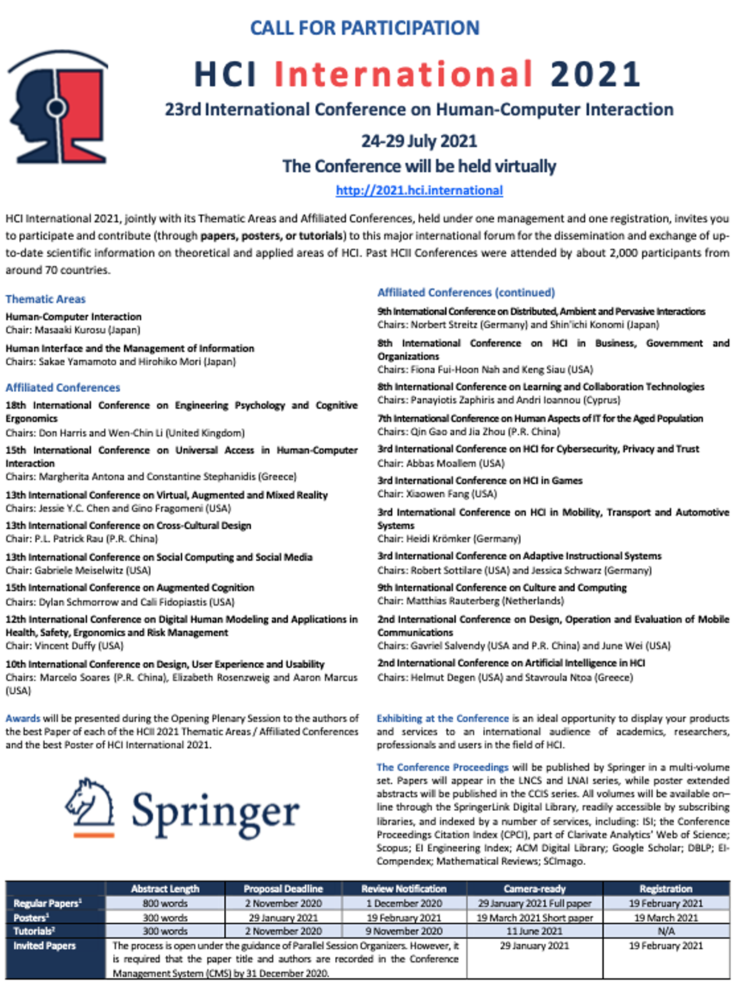 | 【会议】UX领域国际会议邀请:人因功效与人体工程学国际会议(AHFE 2021)、人机交互国际会议(HCII 2021) |