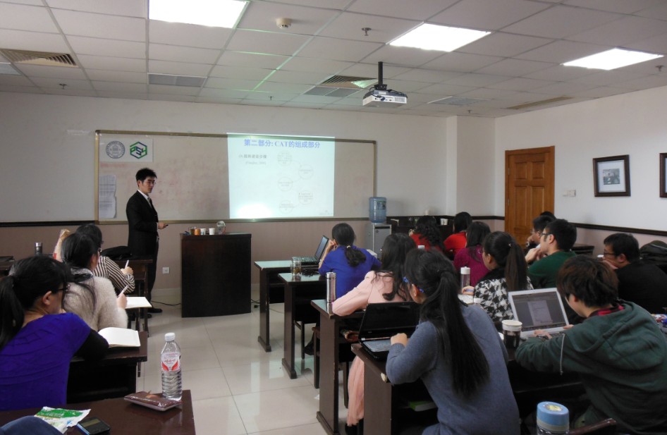2013年12月4日中午,第八期“心引力”学术沙龙在后主楼1426顺利举行。本次沙龙邀请到北京师范大学脑与认知科学研究院讲师、教育部基础教育质量监测中心助理研究员陈平老师,为大家介绍“计算机化自适应测验及其新进展”。 陈平老师早早来到1426室为沙龙做准备,参加沙龙的同学陆续到来,等待调试设备的空档,陈老师以询问同学们“是否有关于本场沙龙主题相关疑问”的方式轻松开场。紧接着陈老师介绍了本次沙龙将从计算机化自适应(CAT)简介、CAT的重要组成部分和CAT的发展新方向及其新进展三个方面的内容展开。 在给出CAT的定义之前,陈老师首先介绍了纸笔测验、计算机化固定题目测验,和它们各自的优缺点及其应用,然后再引出能弥补其不足的计算机化自适应测验的定义:CAT是以项目反应理论(IRT)为指导,基于被试在已作答题目上的表现估计被试水平,并根据选题策略连续地从题库中选择最合适被试作答的题目施测被试,直至满足测验终极规则的测验方法。在对定义中的各个概念作了简要解释后,老师指出了CAT有可记录被试反应时等优点,同时也存在大多数CAT不允许被试返回检查并修改答案等缺点。 之后陈老师向大家说明CAT由题库的校准、初始题目的选择方法、能力估计方法、选题策略、终止规则五部分组成,并对其一一作了介绍。在讲解与CAT相关的选题策略和数理公式时,陈老师将理论知识与同学们密切关注的太傻网GRE考试相结合,并介绍了CAT在国内各方面的应用。 最后,陈老师带大家一起展望了CAT的发展新方向和新进展,重点介绍了与认知诊断相结合的认知诊断计算机化自适应测验(Cognitive DiagnosticCAT, CD-CAT) 和与多维能力估计相结合的多维计算机化自适应测验(MultidimensionalCAT,MCAT),并对三者的异同、优缺点做出精炼的小结。 本次沙龙内容丰富、主题针对性、实用性高,吸引了校内外众多心理学爱好者及科学研究者,大家积极参与、认真学习和思考,从中获益匪浅。