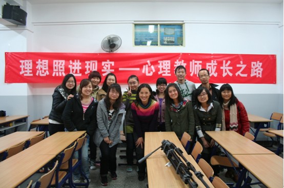 “理想照进现实——心理教师成长之路”系列讲座——马晓晶老师专场 2012年11月8日晚6点30分,由心理学院分团委主办的“理想照进现实 心理教师成长之路”系列讲座——马晓晶老师专场,在我校化学楼301室举行。 马晓晶老师1997年毕业于北师大心理学院,从教15年,一直致力于学校心理健康教育工作的实践研究。 讲座开始后,马晓晶老师围绕“我理解的心理教师成长之路”的主题,首先介绍了心理健康教育的发展现状。据马晓晶老师介绍,目前中小学心理健康教育发展现状表现为:起步晚发展快,心理健康教育逐步深化,心理健康教育模式逐渐趋合社会需求,心理健康教育师资培养逐渐规范等特点,但仍存在:学校心理健康教育缺乏必要的行业规范和束缚,学校心理健康教育的整合性较低,心理健康教育大的支持不到位,中小学心理健康教育缺乏深入研究和系统规则等局限。而目前中小学心理教师发展现状表现为:中学、小学发展不平衡,专业程度越来越高,人员越来越壮大,学校需求越来越强烈等特点。 随后马晓晶老师又介绍了心理教师的发展领域,分为:一、管理领域,如“普通教师—年级组长—部门主任—主管校长—校长”的发展模式;二、其他领域,即由于各种原因转行进入其他领域就职或任教;三、专业领域,又分为人事职称层面、专业水平层面、自我认同层面。同时为同学们指出了多领域发展的方向。 紧接着马晓晶老师就专业心理教师的工作领域进行了介绍。提出了心理教师是学校德育队伍中不可替代的力量,是学校德育工作的信息提供者、沟通协调者、决策参与者,是学生心灵港湾的营建者,是父母实施家庭教育的指导者,是教师成长的支持者等观点。明确了心理教师重要的地位与作用。同时明确了心理教师的工作对象为学生、教师、家长,工作内容主要分为:规划学校的心理健康教育工作,开展心理档案工作,开展个体心理辅导,开展团体心理辅导,营造心理健康教育环境,进行心理健康教育科研等方面。 最后,马晓晶老师提出心理教师的七个必备素养:阳光的心态,宣传自己的能力,拓展工作领域的能力,寻求支持的能力,丰富自己的经验与体验,终身学习的意识和能力,对自己的未来有设想。 学生提问环节,马晓晶老师耐心解释了心理教师工作领域中,开展心理档案工作是要根据学校实际情况建立符合自己学校特色的心理档案,充分发挥其积极作用。 整场讲座,马晓晶老师一直围绕心理老师成长之路的中心,强调爱岗敬业精神和专业知识的重要性,给同学们很多实用性的指导。 晚8点45分,马晓晶老师与全体到场人员合影留恋,讲座圆满结束。