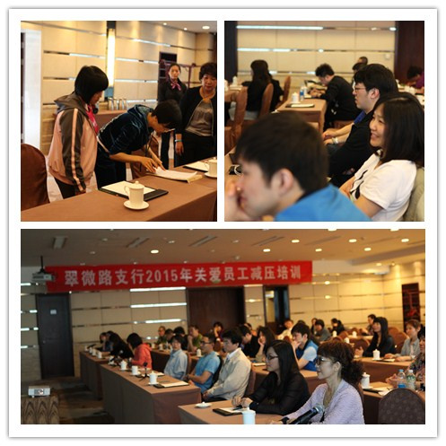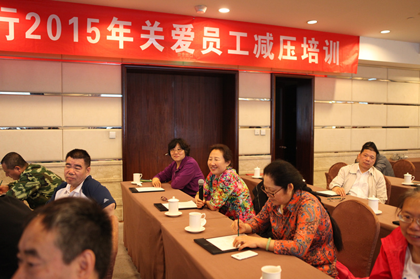 课堂上,刘教授首先与学员们剖析分享了各自的压力源,以及职业特点与幸福感的关系,不仅引起了学员们的阵阵笑声,也引发了学员们对什么是幸福,如何才能够获得幸福的思考。刘教授从人格结构的分析角度讲述了人格与行为模式的关系,并以实际交往场景中存在的实例来分享相关的科研成果。从科学研究中得出的结论指导学员们在人际交往中如何面对自我,获得自主,用爱与共情取代控制,释放正源,协调人际。 图2 北师大心理学院高层培训中心(EDP)承办的中国工商银行股份有限公司北京市翠微支行的内部培训课堂精彩瞬间