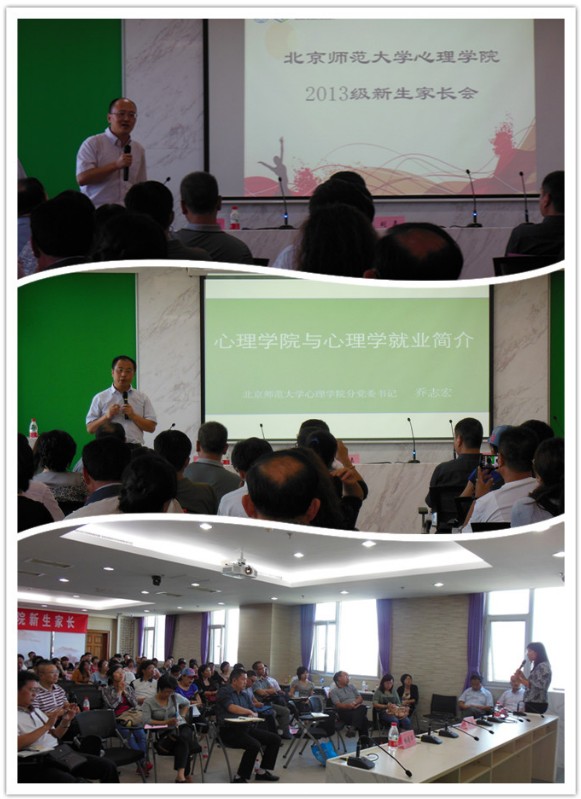 伴随着九月的凉爽秋风,心理学院迎来了2013级朝气蓬勃的新同学。今年心理学院共招收255名新生,其中本科生114人,硕士研究生119人,博士研究生22人。 9月14日是我校新生报到日,校园里处处洋溢着喜庆欢乐的气息。心理学院分团委、学生会、研究生会以及各党支部的迎新人员早早到岗,做好了迎接新生入学的各项准备。早晨6时15分许,随着第一名新生的到来,成人视频 迎新工作正式展开。迎新站的工作人员热情耐心的为新同学们办理签到、盖章等手续,并为新生发放了学院精心准备报到流程、日程表、心理学院新生宝典等材料。办理完报到手续后,2013级的新生们在学院精心设计的背景板前拍照,留下了来到北师大后的的第一抹笑容,同时,在设计精美的留言板上写下对于即将开始的大学生活的设想。随后,以学院2012级同学为主的迎新志愿者们主动帮助新生拿行李,引导他们前往电子注册处和图像采集处,细致地向他们介绍学校的教学楼、超市、食堂等生活设施的分布情况,帮助新生熟悉校园环境,并将他们送到宿舍。 上午9点左右,我校党委书记刘川生、校长董奇等校领导一行人来到成人视频 迎新处,成人视频 院长刘嘉、分党委书记乔志宏等院领导向书记和校长介绍了心理学院的新生报到情况,展示了介绍成人视频 学生工作的宣传展板等。刘书记与董校长充分肯定了成人视频 的迎新工作,并对迎新站辛勤工作的志愿者们表示了慰问。 下午3点,成人视频 在后主楼1318召开了2012级新生家长会,心理学院院长刘嘉、分党委书记乔志宏、副书记林丹华、2013级本硕博新生班主任出席,80余位新生家长参加,家长会由心理学院分团委书记王瑞敏主持。院领导们分别介绍了学院人才培养目标、学院历史和学生就业、教学安排与实习实践等。乔志宏书记重点结合实际案例讲述了家长应如何帮助孩子适应新的学习环境、合理规划大学生活、不断迈向独立自主。随后,家长们踊跃提问,从出国留学、专业选择、师范生培养、学生安全等多个方面与院领导进行积极互动。家长会一直持续到下午5点半左右。家长会结束后,学院组织新生家长参观了各实验室和学院文化墙。 15日晚上,2013级新生班主任分别在后主楼1318、后主楼1426、教九楼301组织本硕博新生召开了新生班会。各位班主任组织同学们相互认识和交流,另外,还带领同学们共同学习《学生手册》,并重点讲述了学籍管理、违纪处分、安全注意事项等学生事务相关问题。 随着2013级新生陆续到校,成人视频 2013年的迎新工作顺利完成。祝愿心理学院2013级所有新同学能够尽快适应新的环境,践行心理学院的院训,不断追求卓越,在今后的学习和生活中不断的提升自我,实现自我! (心理学院学生工作办公室)