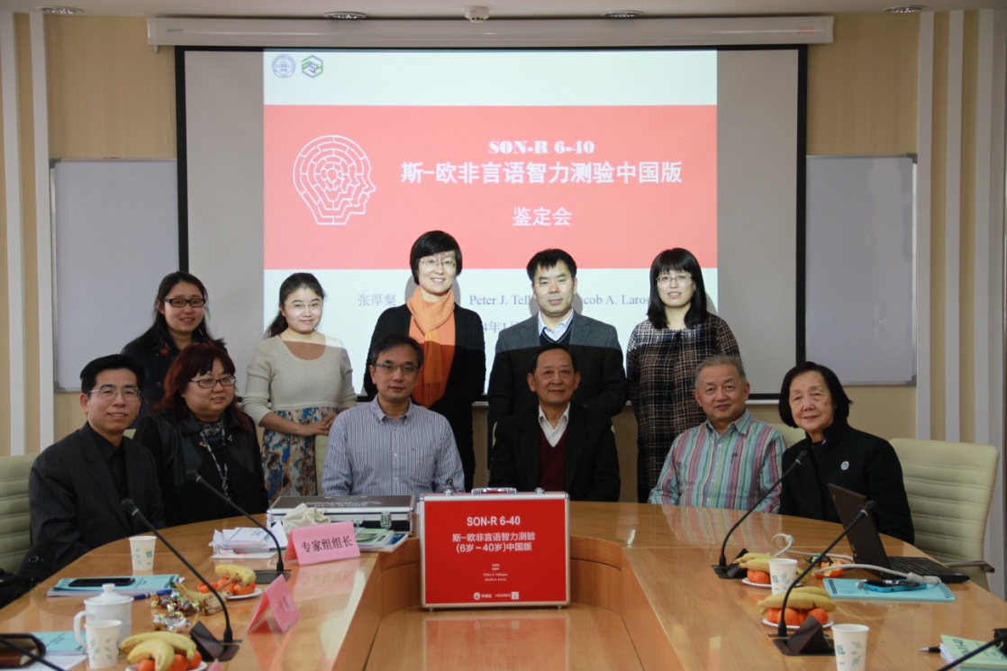 2014年1月23日上午,由中国心理学会心理测量专业委员会组织,邀请张建新研究员(中国科学院心理研究所)担任组长,车宏生教授(北京师范大学心理学院)、方平教授(首都师范大学教育学院心理系)、甘怡群教授(北京大学心理学系)和谢小庆教授(北京语言大学教育测量研究所)共同组成的鉴定专家组,在成人视频 1316会议室组织专家鉴定会,鉴定通过了斯-欧非言语智力测验(6岁~40岁)中国版(SON-R 6-40)。 SON-R 6-40是一套用于测查不同性别、不同民族6岁到40岁人群智力的非言语智力测量工具。测验的研发与修订者为成人视频 张厚粲、徐建平与格罗宁根大学的Peter J. Tellegen和巴西利亚大学Jacob A. Laros四位学者。整个研究工作历时四年多,2013年完成之后研究者向中国心理学会心理测量专业委员会提出鉴定申请。 鉴定专家组在审核申请材料的基础上,认真听取了申请者口头报告,审查了申请者提供的各项书面和电子材料,包括测验版权原始合同、技术研究报告、原始数据电子版、测验原始记录等,审验成套测验样品,质证问答。最后,专家组书面鉴定结论认为:“该测验理论基础扎实,提供的数据真实,修订设计合理,施测指导明确灵活,标准化操作严格,常模构建方法先进,分数计算方法和呈现形式可取,分数解释合理。因此,专家组成员认为该测验质量可靠,适用于跨文化群体,可以满足中国多民族、多语言、多区域文化人群的智力测量需要,一致同意通过鉴定。” 外语教学与研究出版社副总编辑王勇、研发中心总监宋微微、儿童发展中心副总经理吴红岩与编辑罗丽娟作为将要出版该测验的中方出版社代表,列席了本次鉴定会。