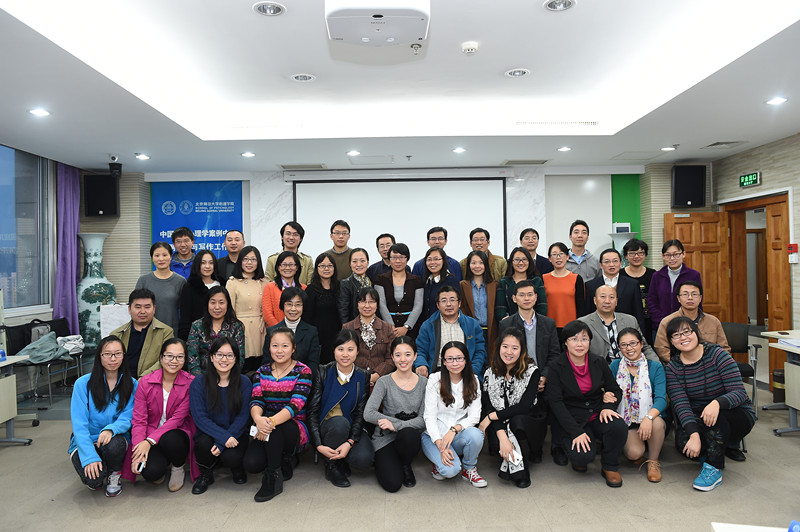 上课前,就有五个案例发到大家的邮箱,要求来上课前阅读。大家来到教室,在签到后就被引到已分好组的、放了自己名牌的座位上。后面的授课环节,大家更是发现众多与传统授课不同之处,比如:相较传统教学,李娇老师一天的PPT没有多少页,且文字简练;课堂大部分时间不是李娇老师在讲,而是有大量组内讨论和组件分享;但不同于我们熟悉的分组讨论,所有安排的讨论环节都是会引导大家得出李娇老师早早“埋伏”好的知识点,并通过对一个个由真实事件整理、采编而成的案例的分析,把学员们投身在仿真的情景中解决真实的问题。 李娇老师通过演示如何引导学生自己归纳总结出知识点,用实战演练加穿插讲解,不时安排问答环节,启发大家积极思索、讨论如何将案例与自己所授课程结合等方式,不知不觉就将什么是案例,案例教学的作用和特色、如何撰写案例等知识点揉捏进授课中。应用心理专硕的老师们对于能够用亲身上阵、真实体验“被”案例教学的方式学习案例教学觉得既新奇又卓有成效。 案例教学不但能活泼课堂,极大调动学生的积极性,且因为案例必须是由真实事件整理、采编而成,学生相当于在学习过程中就经历的多轮的实战演练,从而达到学习理论、实际应用两者有机结合的应用型人才的培养目标。 图二 来自各高校组成的中国应用心理学案例中心首批案例培训学员齐聚北京师范大学参与中国应用心理学案例中心案例开发与写作工作坊