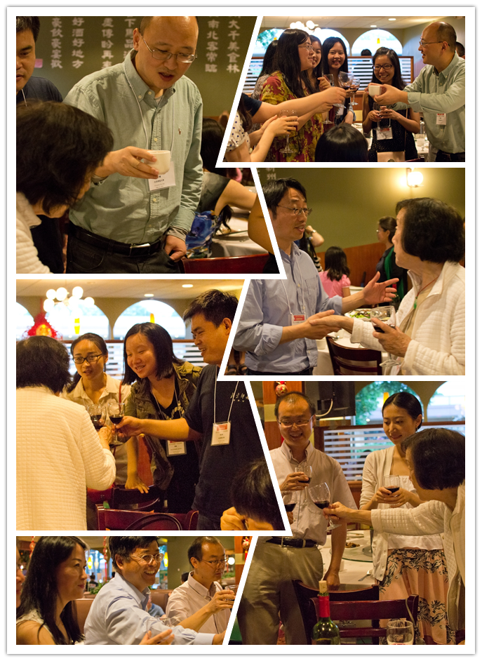 接下来,校友们分别进行了自我介绍。毕业多年,异地他乡相聚,校友们难掩激动的心情,但又非常认真的介绍自己在学校的经历和现在的状况。其他校友听众们不停的鼓掌、鼓励。同学们在相互介绍中一起回忆在学校生活的点点滴滴,每个人都有无悔的青春和现在。 真诚的自我介绍环节结束后,通过举手表决,北京师范大学心理学院校友会北美校友会章程得以全票通过。在现场老师和校友的见证下,心理学院刘嘉院长向北美校友会代表进行授旗,北师大心理学院北美校友会正式成立。北美校友会的组织结构和会长人选等正在组建中,敬请期待。 仪式结束后,老师和校友们进行了冷餐会,献上彼此真诚祝福。本次活动至此圆满结束。 图6:北师大心理学院北美校友冷餐会的热烈场面 图7:北师大心理学院北美校友们的室外合影