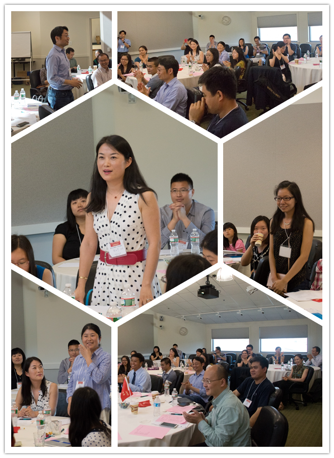 北美校友们齐聚一堂,精心准备,对母校老师的到来表示热烈的欢迎。现场的校友代表向张厚粲先生赠送了鲜花,并向张先生和刘嘉院长、张西超副院长送上了欢迎礼物。在主持人的宣布下,活动正式开始。 大会首先由刘嘉院长向与会教师、校友汇报了学院近期发展情况,并播放了《心理学院建院30周年》纪念片。同时,刘院长向各位海外校友带去了学院领导和老师们的祝福。期望各位校友支持学院的工作,在学术、交流、社会影响力等多方面帮助学院成长;也希望海外校友的事业蓬勃发展,生活幸福。 图5:北师大心理学院北美校友认真的进行自我介绍;忠实的粉丝们热烈鼓掌