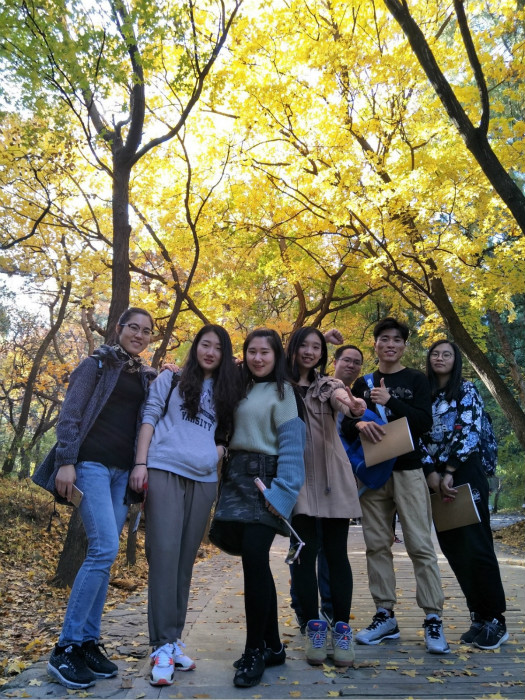 2017年11月2日,北师大成人视频 2017级临床与咨询心理方向的同学们举行了一次班级秋游活动。早上八点,一行人从积水潭地铁站出发,感受着北京特色的“早高峰”,一路上有说有笑,开始了愉快的香山之行。 一叶落而知天下秋,这是北京最浓最美的秋色。经过了上周的雾霾天,北京终于迎来的晴空万里、秋高气爽的天气,尽管气温略低,人们看枫叶的热情有增无减。经过一个多小时的车程,我们顺利到达香山公园东门,合影留念后,慢慢走进了心之向往的香山景区。 我们在拍照,路人也在拍我们 党旗在手,天下我有 登山的第一站便是著名的双清别墅,她位于香山公园南麓的半山腰,环境幽雅,因其苍翠的竹林、遮天蔽日的银杏、挺拔的松柏、古朴的建筑引人前往。然而,真正使这个地方闻名天下的并不是她的秀丽风光,而是因为这里曾是毛主席住过的地方,曾是中共中央的指挥中心,曾发生过扭转中国命运决定中国前途的大事。此次秋游活动,我们玩乐之余,不忘参观红色景点,把人文景观和自然景观的美结合起来,去了解这片土地背后史诗般的故事。 在双清别墅参观学习,追寻领袖的革命足迹,感受红色情怀 怀着对老一辈革命家的崇敬之情,离开了双清别墅,继续我们的登山之行。在登山的途中,我们互相帮助,相互鼓励,共同欣赏层林浸染的美好风光。 随着登山的高度不断增加,我们终于上了半山亭,层层叠叠的山峦、大大小小的阁楼、千枝叠万枝的枫叶浮在眼前,万寿山、佛香阁若隐若现,“烟树深处,正藏着我们的北京城”。 北师大MAP是这一天香山中最美的风景 雨打青松青,霜染枫叶红 登上香山顶后,太阳正浓,照在红透了的枫叶上,叶叶生辉。香炉峰旁人头簇拥,大家争相合影留念。我们坐在亭子里纳凉,体会古人“一览众山小”的心境,回想起爬山的艰辛,觉得一切人生并非是“西西弗神话”般的荒谬,亦可“偷得浮生半日闲”。 登顶遥望北京城 下山时,同学们分为了缆车、陡坡和缓坡三路。陡坡组和缓坡组在下山时,遇见了很多岔路。陡坡组的同学“误入”银杏林深处,发现了一片美丽的世外桃源;缓坡组的同学则徐徐前行,边聊天、边停下来捡树叶;而缆车组的同学则早早到达山底,遥望我们“长征”归来。 缓坡组的大长腿们 香山行秋游活动至此圆满结束,参与活动并成功登顶的同学们全部获得纪念本一个。每个人在本子里夹进了红红的枫叶和温暖的阳光,留下了关于此次秋游最美的印记。 香山顶大合影