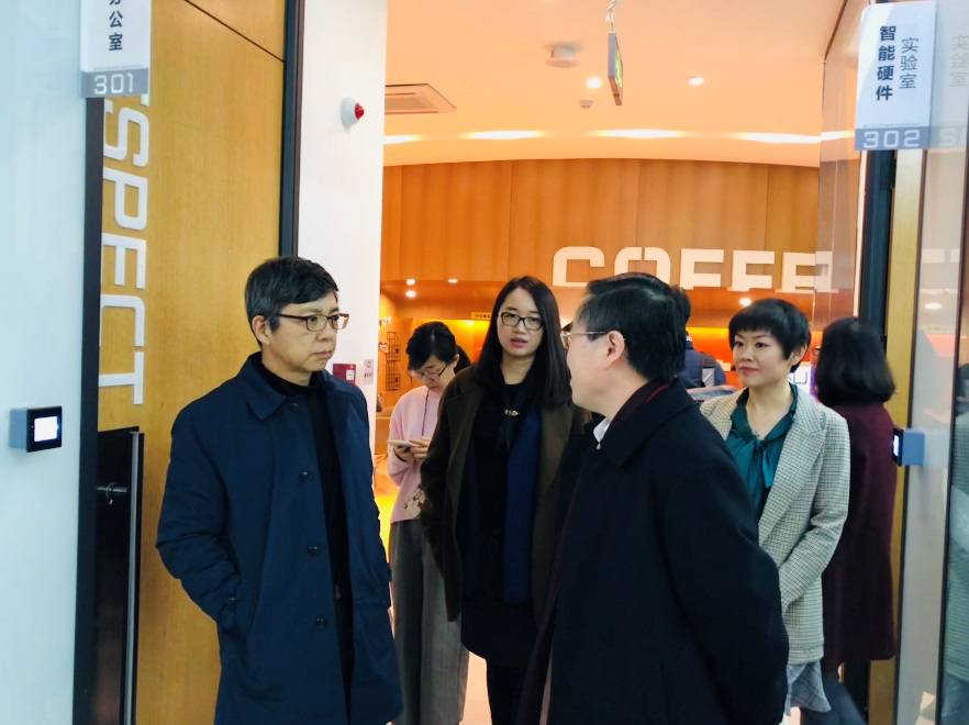 图1 教育部留学服务中心副主任艾宏歌调研赛客双创空间及中美青年创客交流中心
