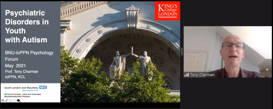 The first session of Sino-UK “Mind” Salon between the Faculty of Psychology, Beijing Normal University (BNU) and Institute of Psychiatry, Psychology & Neuroscience (IoPPN), King's College London was successfully held online on 10th May, 2021. The first session titled “Children and Adolescent Mental Health” was hosted by Professor WANG Jun, Vice Dean of Faculty of Psychology, BNU. And it has invited two inspiring talks from the two institutions, they are respectively “Psychiatric disorders in youth with autism” by Professor Tony Charman from IoPPN, “Chinese emotional parenting and child psychopathology symptoms” by Associate Professor HAN Rachel Zhuo from the Faculty of Psychology, BNU. The first salon has attracted more than 80 audiences including students and faculty members from both sides. More exciting sessions of the Sino-UK “Mind” Salon could be anticipated in the coming weeks.