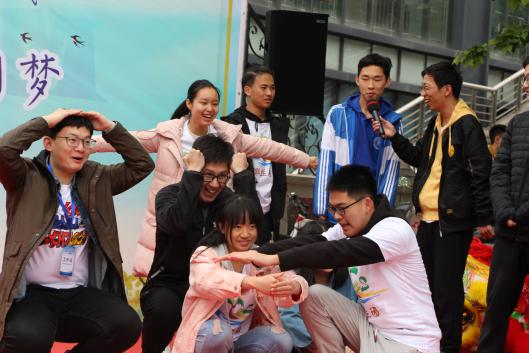 2019年4月28日上午,“525大学生心理健康节”开幕式在邱季端南举行,在舞台处进行即兴戏剧表演互动的“椰丝团”为大家带来了一系列精彩纷呈的演绎,舞台上时不时传来阵阵欢声笑语,气氛一度被推向高处。 当天上午9:00,场地布置好后,椰丝团的团员们便开始进行暖场活动——“创意空间”。“我是一块豆腐”,“那我是夹豆腐的筷子”,“我是煮豆腐的火锅”……同学们创造力丰富,演绎出了一幅又一幅或奇异或有趣的画面,包括“一锅火锅”、“一个人的情侣”等等,引得路人纷纷驻足观看,露出了好奇的笑容,经过引导,也有不少路人参与到了这个暖场环节中。 开幕仪式结束后,“三头专家”就在舞台上闪亮登场了。“这是一位来自外星的专家,它有三个头”,每个头每次只能说一个字的奇妙设置极其考验台上三位同学的默契,不论是场上时不时爆出的无厘头答案,还是主持人机智救场串联起来的解释,都引发了场上场下一阵阵欢快的笑声。 趁着来往的人越来越多,椰丝团的团员们抓准时机,开始了简单易参与的游戏环节——“biblibablibong”,大家围成一个圈,互相念着咒语,反应慢的、反应错的都要被换到中间去,成为新的“咒语发射人”,由于规则简单易懂,且气氛热烈,很快就有很多人加入了这个游戏,围的圈子也越来越大,大家兴致越来越高,不断变换着花样想让别人出错,场内充满了快活的气息。 游戏环节的第二个游戏是“woosh bang xiu”,随着咒语被念动,在圈内仿佛有一个能量团被传动,随着游戏进程推进,大家的动作也越来越快,仿佛吸收了来自能量团的能量,而做错反应的人要和圈子上的每个人击掌,并大声说出自己的名字,圈子上的人则一边欢呼一边交换位置,一度将气氛推向高潮。 最后进行的是“拍拍走”和“观众纸条”,这是即兴戏剧的两种表演方式,很好地体现了“即兴”的精髓,并且将台上的演员和台下的观众紧密地联系在了一起,不论是椰丝团的团员还是临时加入的观众们,大家都脑洞大开,时不时上演一起“神转折”,演出了各种各样生动有趣的故事,引得场内场外笑声连连。 活动结束前,椰丝团的团员精心为大家准备了抽奖环节,所有参与活动的同学都有机会抽取小礼品作为奖励。随着两个“重量级”的一等奖礼物被陆续抽中,椰丝团的外场活动在一片欢笑声中落下了帷幕。最后,给大家送上一波活动精彩瞬间集锦吧! 民间有高手,群众藏戏精 背着书包也能随时随地加入 可以收藏的一二三等奖——你值得拥有,猜猜那个红色的罐罐是消防灭火器吗? 从领奖人的喜悦里,是不是感到了即兴椰丝团对你们的满满诚意呢 四处游走、卖力宣讲的大笨熊,为了让你们更多人知道椰丝、和我们一样享受即兴的魅力,我们也是尽力了! 忍俊不禁,幸福像花儿一样盛开 |