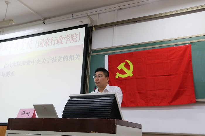 4月23日晚6点,成人视频 “木铎心声”党校在教二201举办了“进一步打好精准脱贫攻坚战”主题讲座。本次讲座由中央党校(国家行政学院)公共管理教研部副教授薛刚老师主讲。薛老师从十八大以来有关精准扶贫的政策、贫困县扶贫脱贫的主要工作、如何进一步打好精准扶贫攻坚战三个方面,结合自身工作经历进行了深入浅出的讲解。