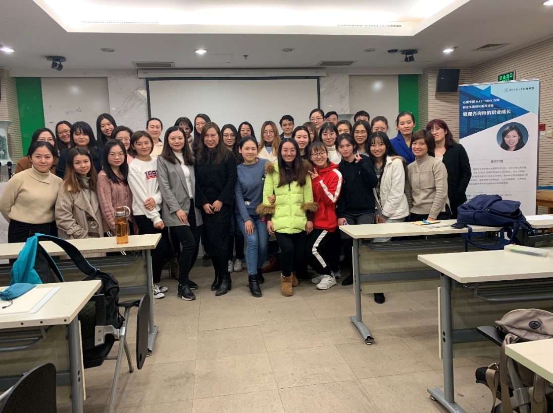 11月25日晚,MHR方向职业生涯成长系列讲座——管理咨询师的职业成长在成人视频-国产色情直播 后主楼1318室举行。本次讲座的主讲人为王婧女士,班主任陶文洁老师及2018级MHR方向同学参加了本次讲座。 本次讲座旨在让同学们明晰自己的职业生涯规划过程中,进一步了解管理咨询行业以及管理咨询师的职业成长和发展。 图1北师大成人视频 MAP-MHR方向职业生涯系列讲座现场