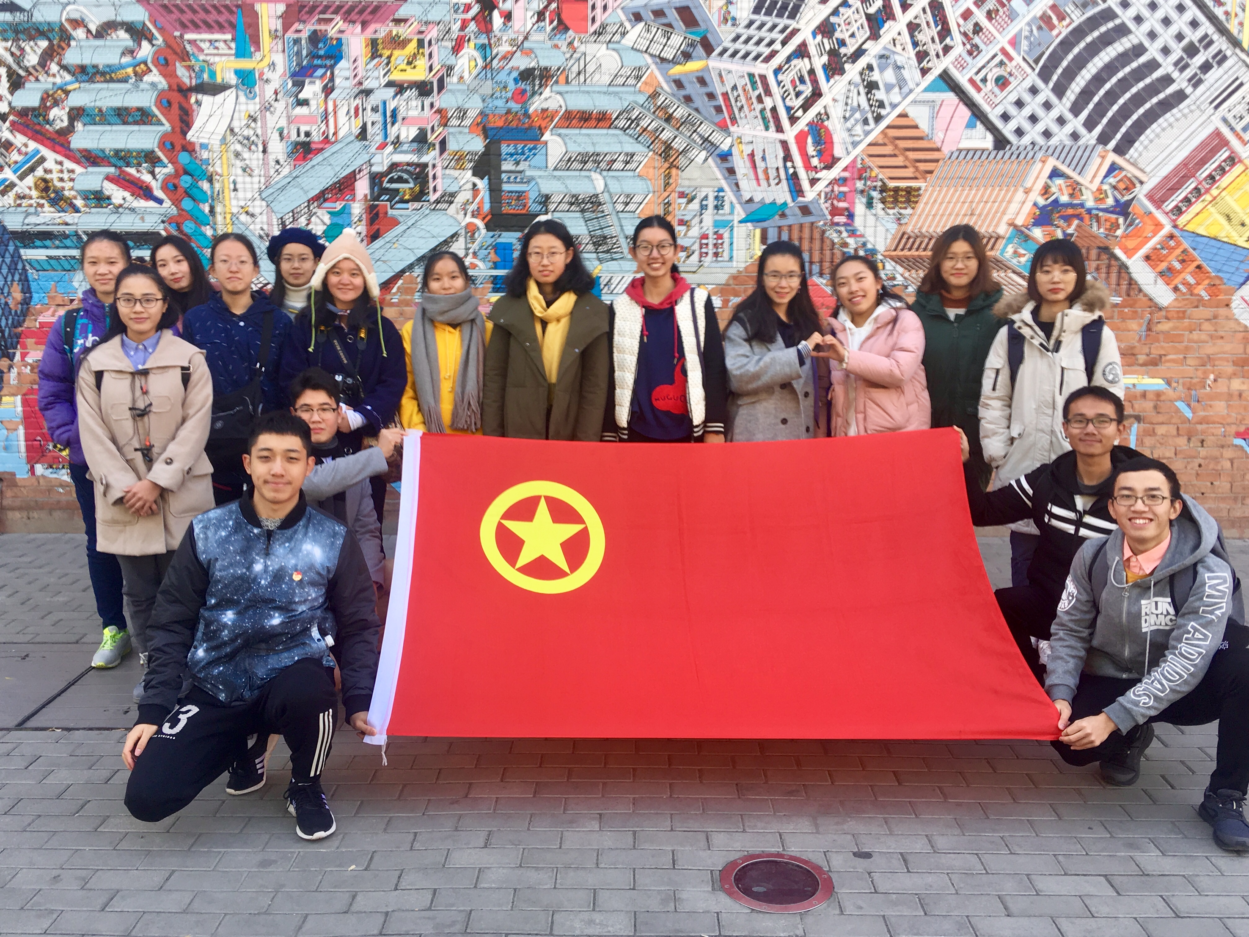 2018年12月9日,在团支书徐炜的组织策划下,成人视频 2018级本科2班冬游在798艺术区顺利举行,在活动中同学们以纪念改革开放四十周年为主题,积极参与,学长导师崔力元,李美辰与2018级2班16名同学参与本次活动。