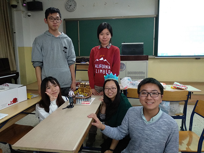 辅导员张照鹏老师贴心地送来了蛋糕,寿星们进行了合影并随后将蛋糕与在场的同学们一起分享。