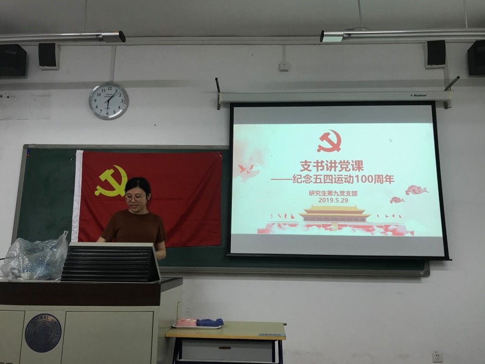 2019年5月29日晚6点,成人视频 研究生第九党支部“支书讲党课——纪念五四运动100周年”活动在教四208顺利举行。活动共有12名正式党员参加,由支部书记笪姝主持。